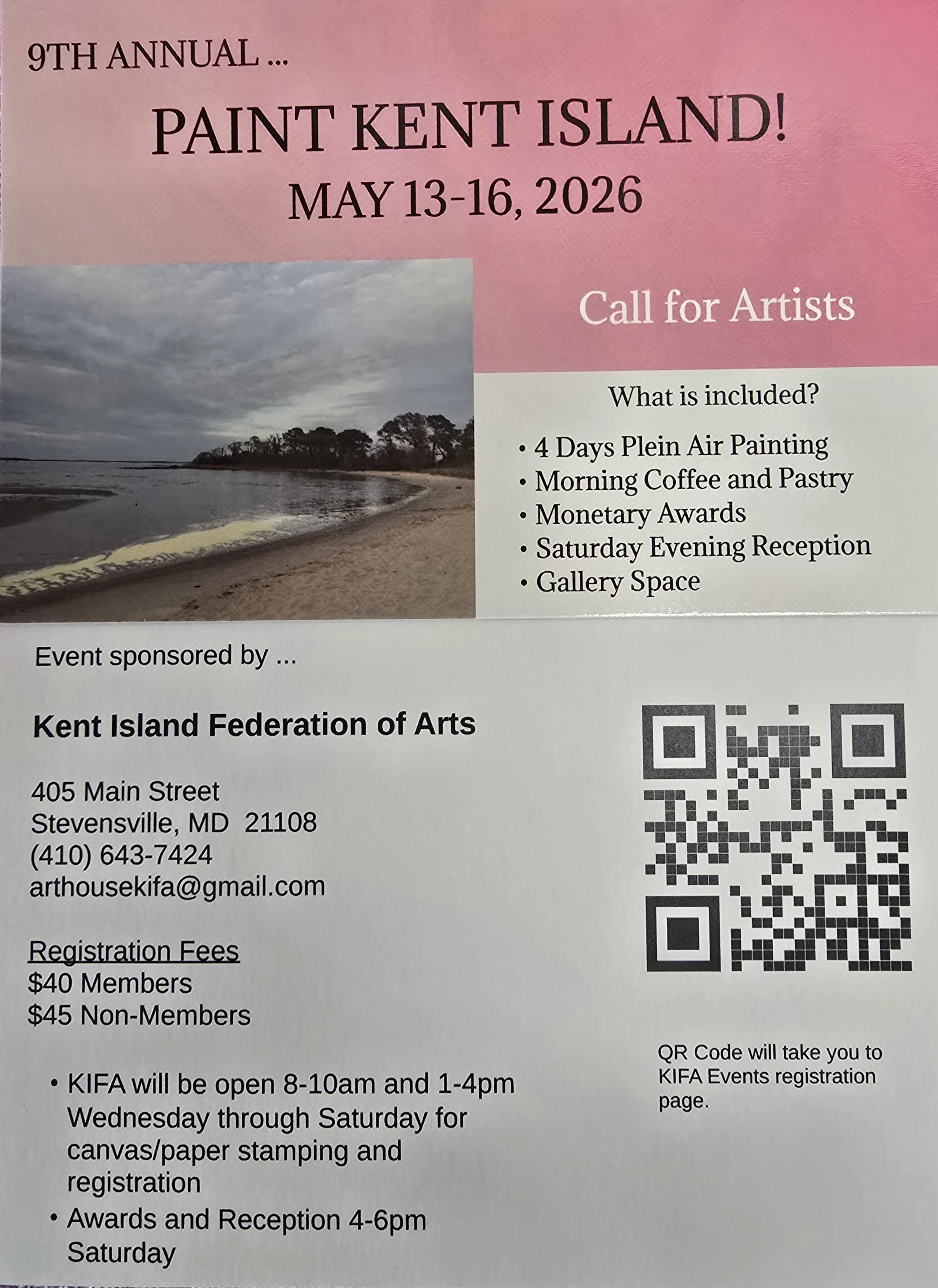Register for this event on the Kent Island Federation of Arts website or stop by KIFA Thursday through Sunday between 1:00-4:00pm.